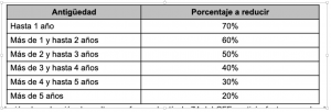 Ejemplo, si te notifican una multa el 1 de Marzo de 2022 por una declaración extemporánea de junio de 2018 que vencía el 20 de julio de 2018. Esa obligación que venció en julio de 2018, si solicitamos su reducción el 17 de marzo de 2022, a la fecha de la solicitud de reducción, tendría entre 3 y 4 años de antigüedad por lo que le tocaría un 40% de reducción conforme a la tabla. Si fuera una declaración que venció dentro del últimos 12 meses, tendríamos derecho a la reducción máxima del 70%.